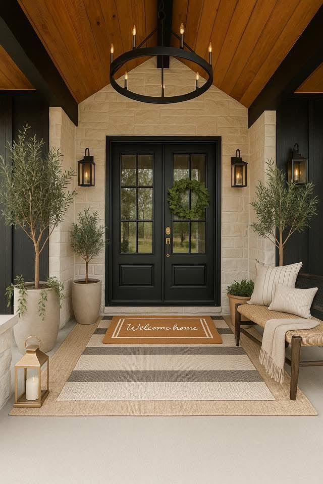 Not every front door has to be bold and make a statement. Sometimes a neutral shade like taupe, beige or white can create a clean timeless look. This gives your home a fresh timeless feel and welcoming entry. This is perfect for you if you want a soft entrance that doesn’t feel to0 overwhelming.